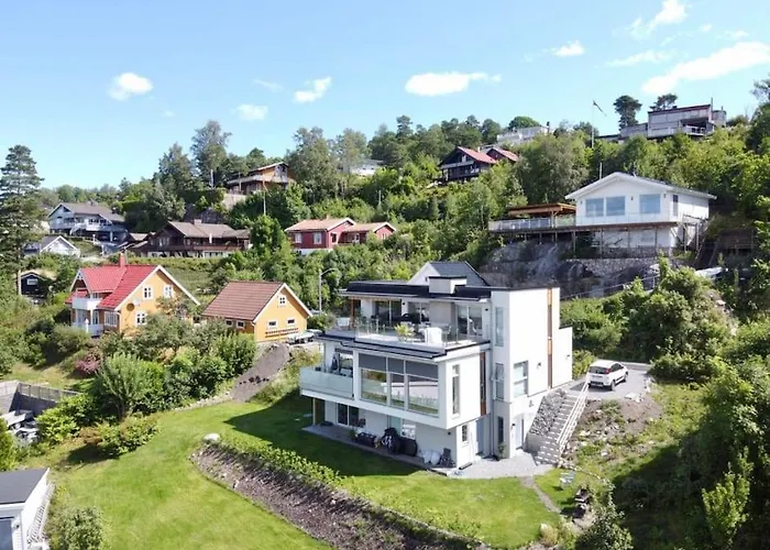 Vila Vila Moderne Bolig, Hoy Standard Og Fantastisk Utsikt Drøbak je umístěna 3 km od Pevnost a muzeum Oscarsborg, je 2-ložnicové ubytování s terasou.